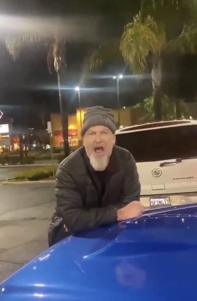 The California man was recently caught on mobile phone video angrily throwing our racist and homophobic slurs at a Hispanic man outside of a Popeyes restaurant in Escondido, California